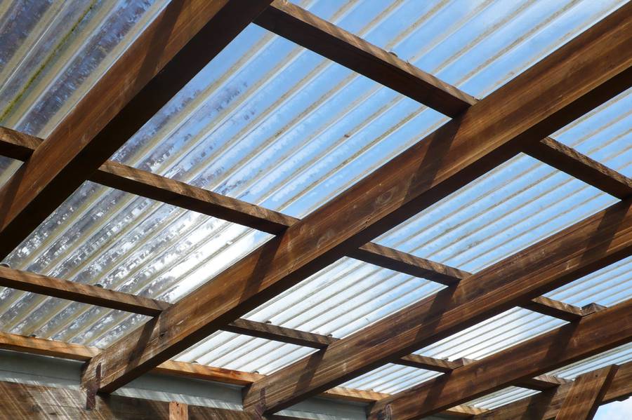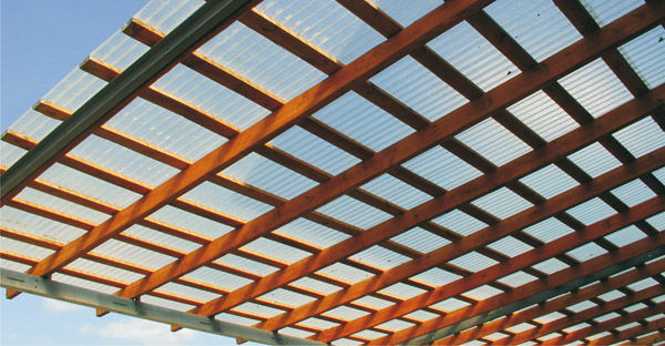 Везде, где нужна прозрачная кровля, использование данного материала оправдано не только с эстетической стороны, но ценовой доступности. Армированный стекловолокном полиэстер представляет собой прозрачные листы или рулоны (прозрачный шифер). Он бывает плоский и волнистый. Листы плоской формы хороши для арок, перегородок.